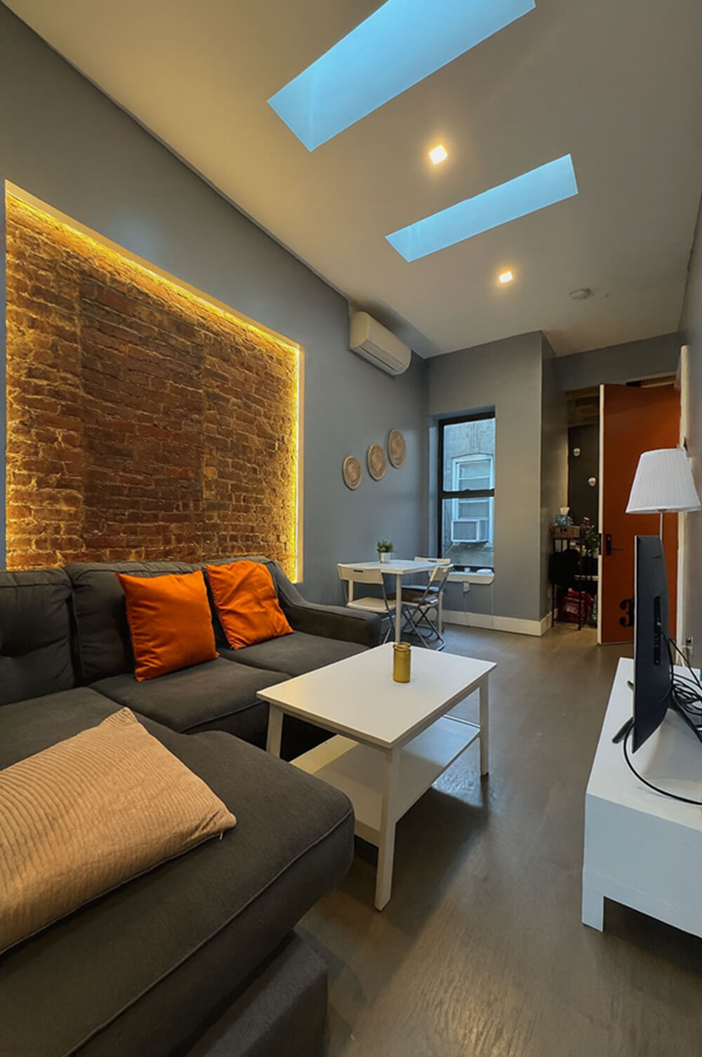 Refined Brooklyn style meets thoughtful design at The Linden, a newly renovated residence where every detail has been curated for comfort and character. Exposed brick walls, skylights, and recessed lighting create a warm, urban atmosphere complemented by clean architectural lines. Modern conveniences such as an in-unit washer and dryer add everyday ease to this contemporary Brooklyn living experience.